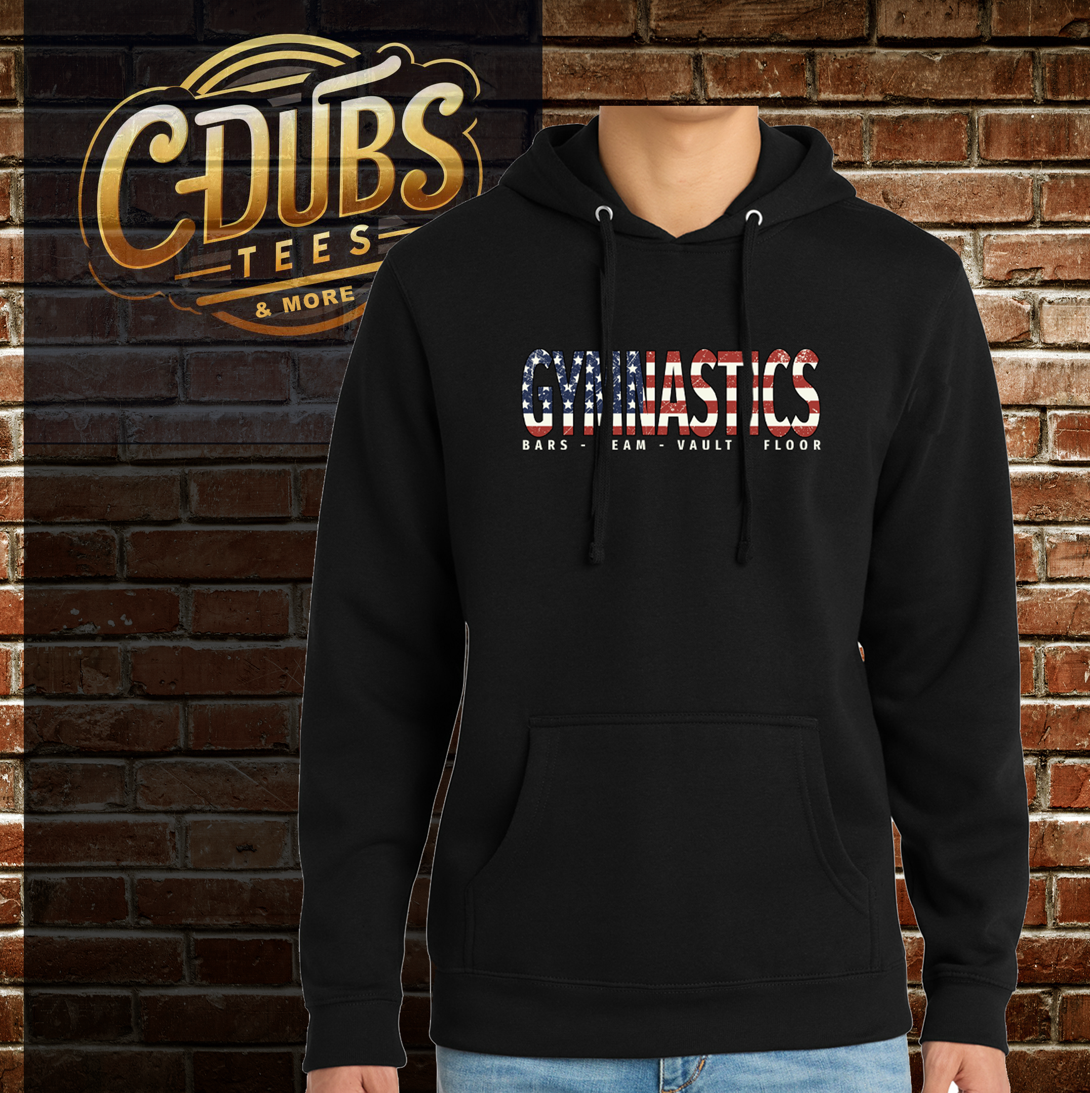Soft comfy hoodie with the word GYMNASTICS in an American flag theme font.